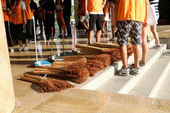 相关部门为志愿者们提供了打扫工具