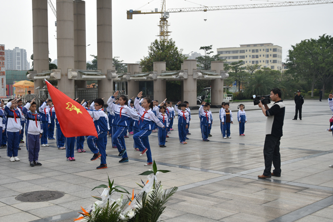 附小邱桂华校长在仪式上发表讲话,号召少先队员们要铭记陈先生流芳百世的生平事迹,更要学习和传承他心系祖国,造福人民的精神,从自己做起,为中华民族伟大复兴而奋斗不息。