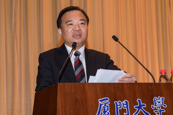 大会由校党委书记张彦主持,校长张荣、长汀县委书记廖深洪、潘懋元、邵建寅、信息科学与技术学院2017级硕士生江建烽先后在会上发言。