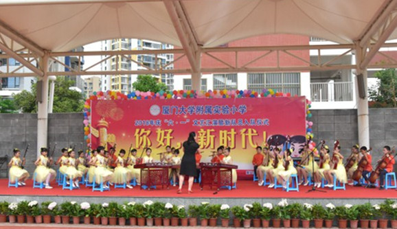 5月30日下午,厦门大学附属实验小学隆重举行以“你好,新时代!”为主题的“六·一”文艺汇演。厦门大学漳州校区党工委书记、管委会主任、嘉庚学院党委书记林辉,漳州开发区管委会副主任刘永祥,开发区教育局局长兰立强等到现场与附小师生共庆“六·一”。