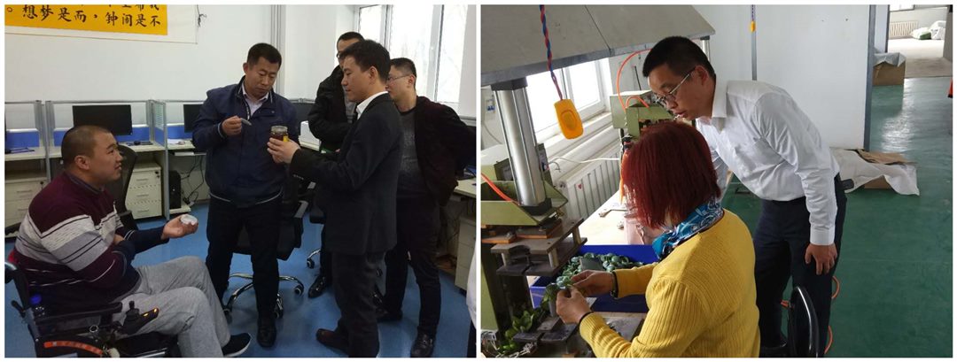 左图:马龙到隆德县残疾人托养中心调研帮扶需求。