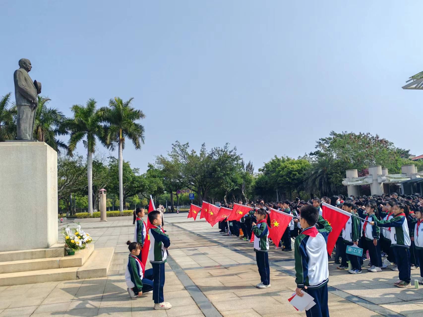清明节前夕,厦门大学附属实验小学也组织师生代表来到校区祭扫陈嘉庚铜像并敬献花篮。