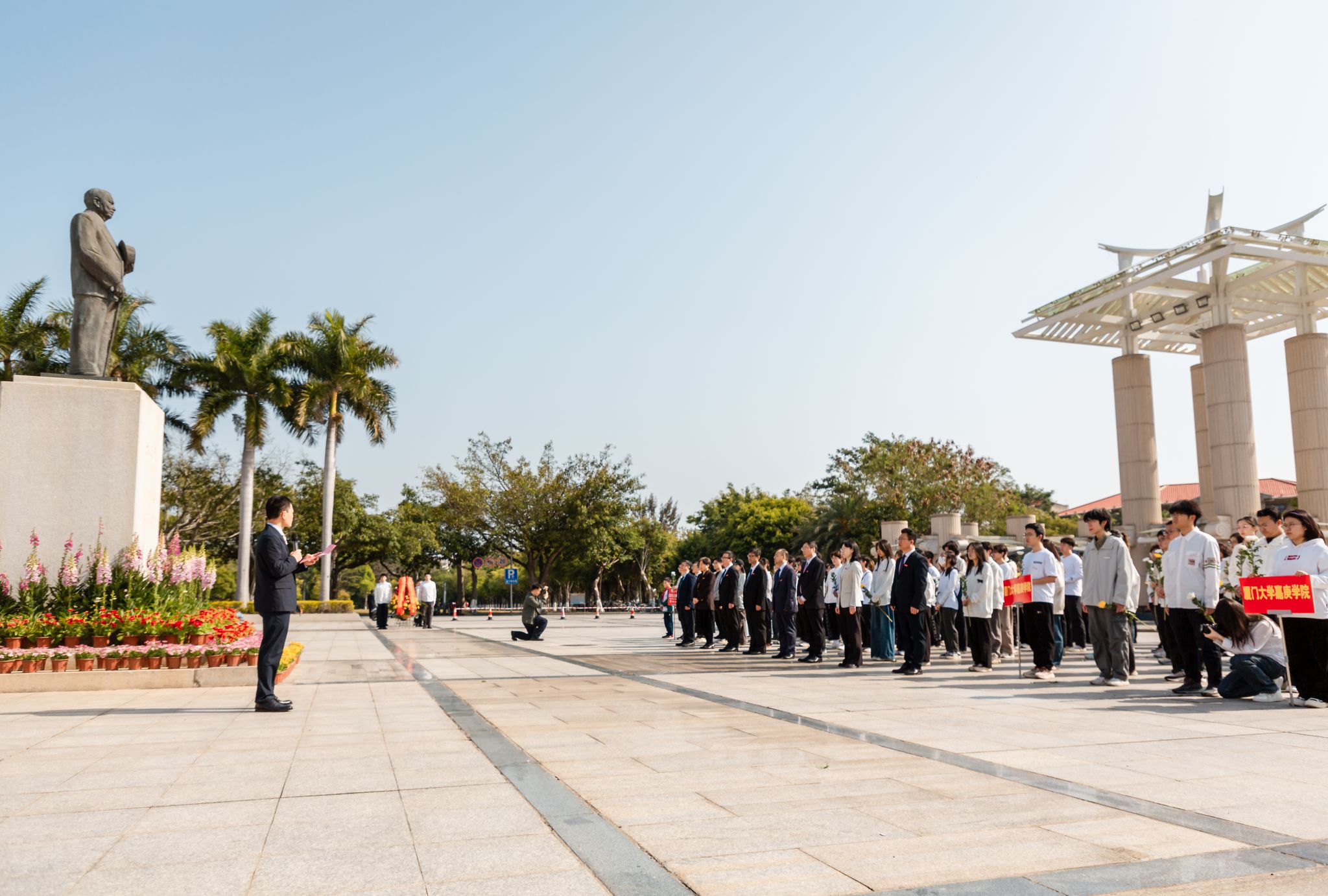 校党委常委、漳州校区管理委员会主任、嘉庚学院党委常务副书记黎永强,漳州校区管理委员会副主任张军奎,嘉庚学院副院长雷锐生,嘉庚学院纪委书记王晓丽,创意与创新学院党委副书记沈辛毅,国际学院党委副书记马向华,产业技术研究院副院长杨斌,后勤集团总经理助理、漳州校区服务办主任张建波参加了祭扫仪式。仪式由漳州校区办公室主任何鸿鸣主持。
