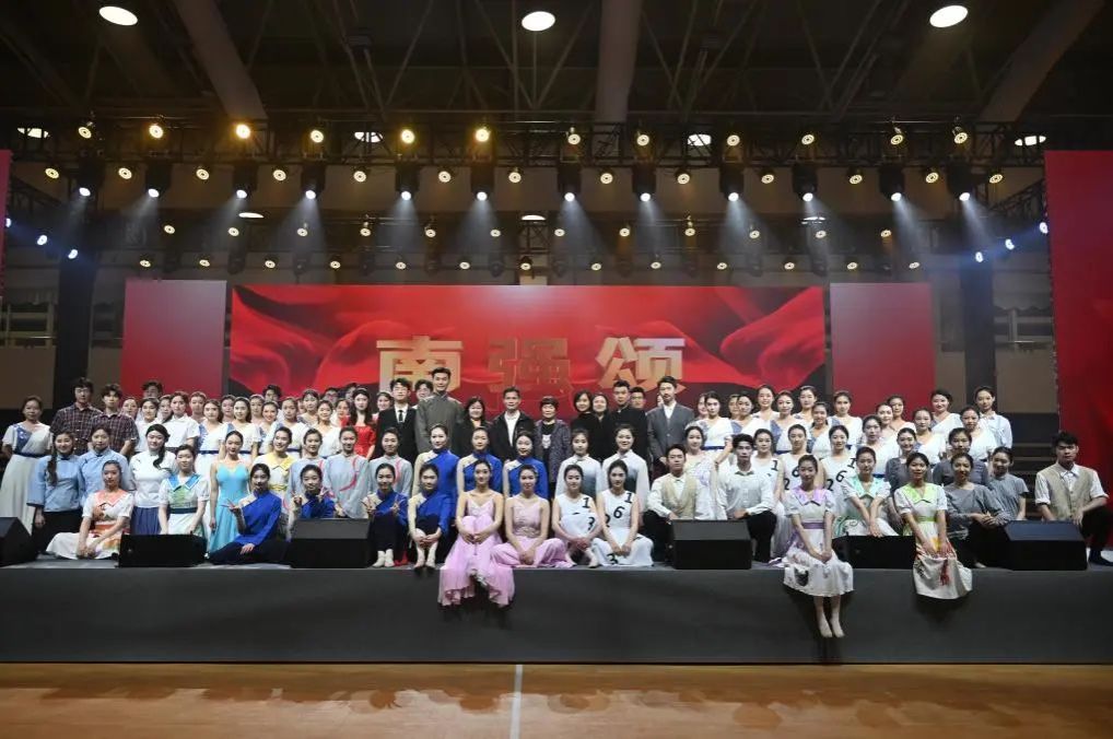 《南强颂》由“爱国伟业”“烽火自强”“厦大新生”“奋进新时代”和“跨越梦想”五幕组成,采用歌唱、舞蹈、话剧、音乐等艺术方式,呈现厦门大学百余年发展历程中最具代表性的人物故事,表现厦门大学与中华民族共命运的历史发展与文化品性。“爱国伟业”演绎了陈嘉庚先生艰苦创办厦门大学的感人事迹,罗扬才烈士为信仰英勇斗争、视死如归的革命豪情;“烽火自强”反映了萨本栋校长带领厦大师生内迁长汀、筚路蓝缕的艰苦历程;“厦大新生”展现了王亚南校长、陈景润先生引领师生勤学不辍、献身科研的光辉事迹;“奋进新时代”呈现了站在21世纪的厦门大学集结青年学子乘风破浪走向世界的辉煌成就;“跨越梦想”传达出厦大青年学子怀抱梦想、护卫盛世中华的崇高理想。