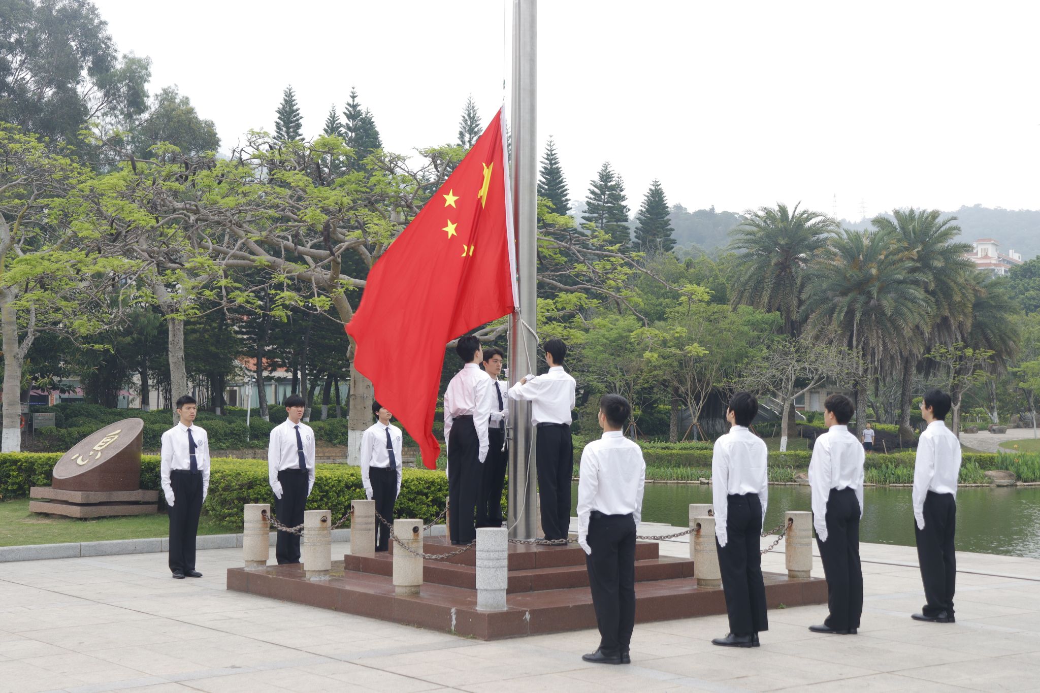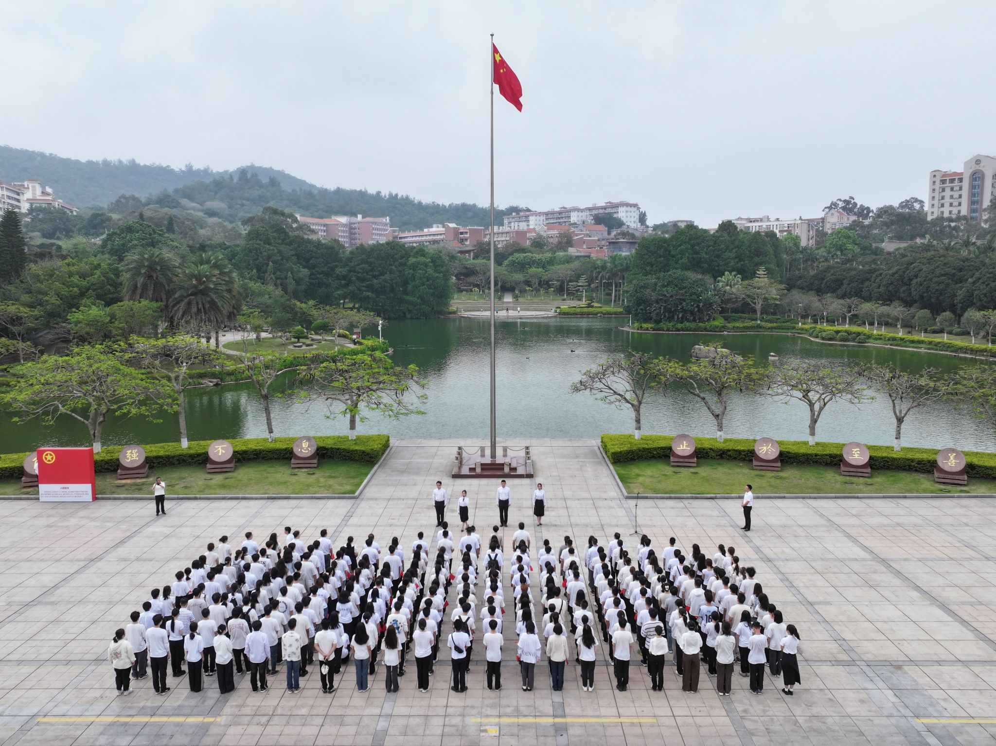 翔安校区和漳州校区同步举行升旗仪式。