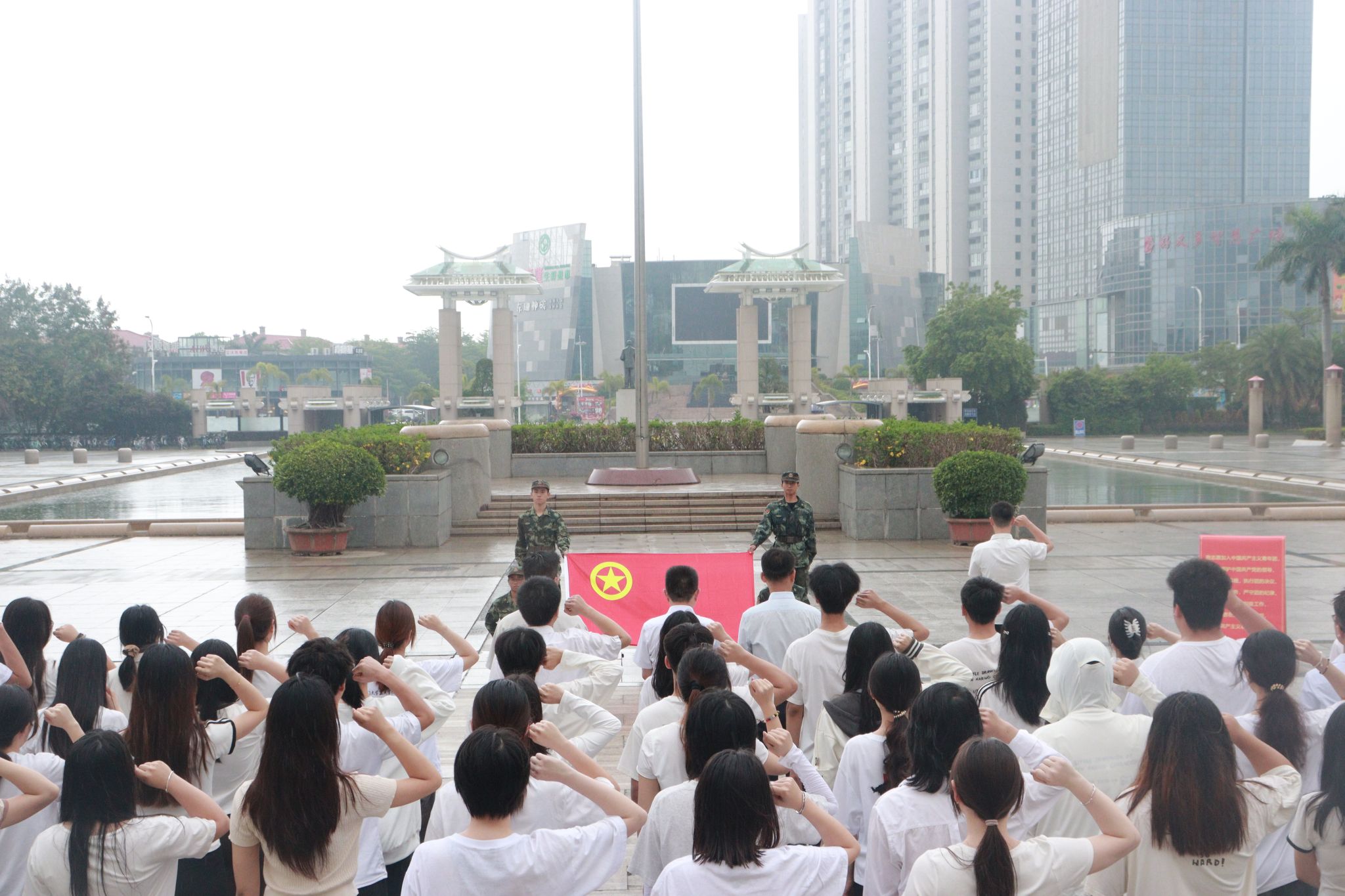“青年强,则国家强”“为吾国放一异彩,能与世界各大学相颉颃”……迎风飘扬的国旗下,校学生艺术团带来诗朗诵《国旗下的礼赞》,凝聚起团结奋斗的青春力量。在五星红旗和团旗的见证下,全体共青团员高举右拳,重温入团誓词,铿锵的誓言在厦园久久回荡。仪式在师生激昂共唱《中国共产主义青年团团歌》中结束。