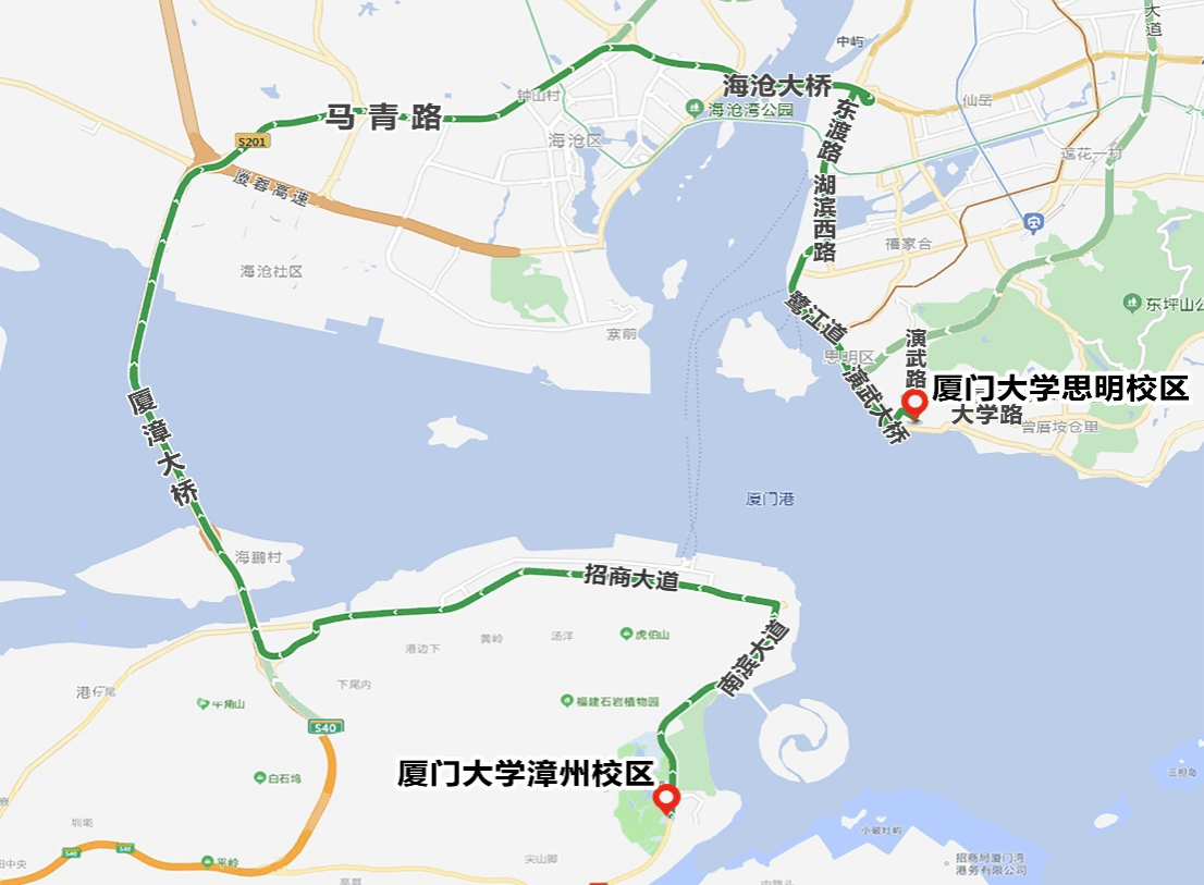 思明校区(厦大访客中心服务台后侧) - 漳州开发区管委会 - 厦大北门 - 厦大中门 - 厦大南门(原则不进校)