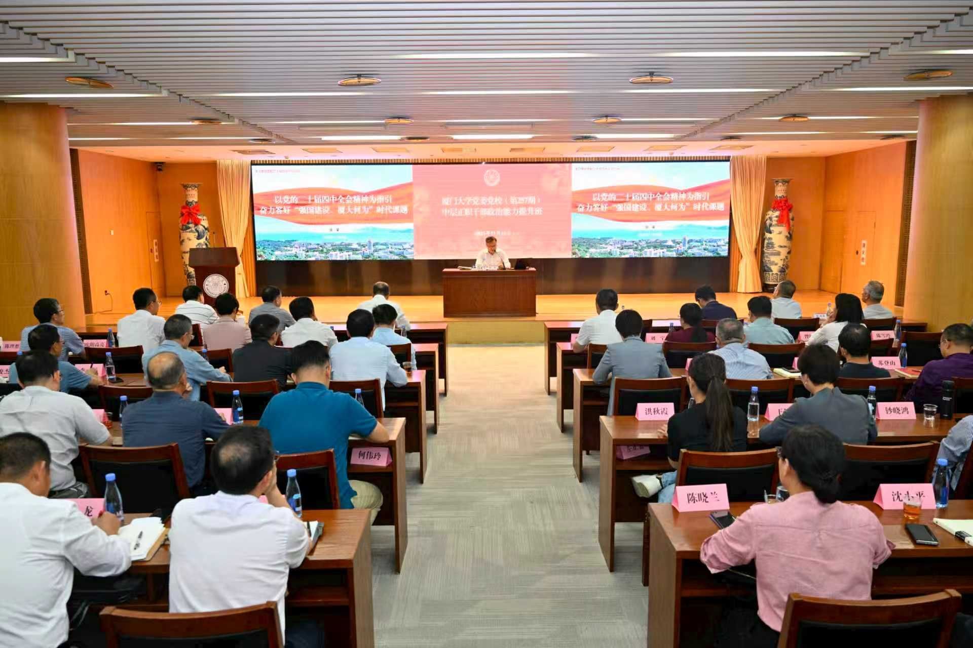 为深入学习贯彻党的二十届四中全会精神,11月10日下午,校党委书记、中国科学院院士张荣讲授题为《以党的二十届四中全会精神为指引 奋力答好“强国建设、厦大何为”时代课题》的专题党课。校党委常务副书记林东伟主持党课。