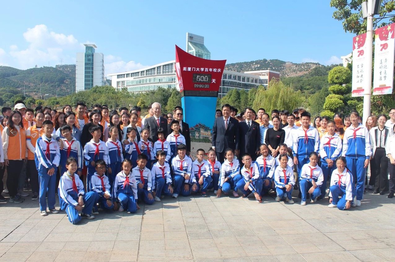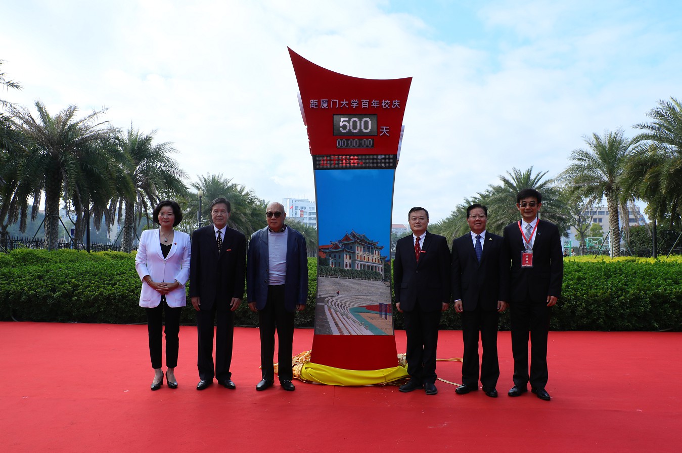思明校区倒计时牌揭幕仪式在群贤楼前举行。校长张荣,原校党委书记王豪杰,厦门大学校友总会理事长、原校长朱崇实,校主陈嘉庚先生长孙陈立人,校友、美国国家工程院院士孙勇奎,校友、厦门德屹股权投资管理有限公司总裁朱德贞,校党委副书记赖虹凯、副校长叶世满、邓朝晖、邱伟杰,原校党委副书记、校关工委主任陈力文,原校党委副书记、纪委书记陈国凤,厦门大学校友总会副理事长、原副校长詹心丽出席。校党委副书记、副校长李建发主持仪式。