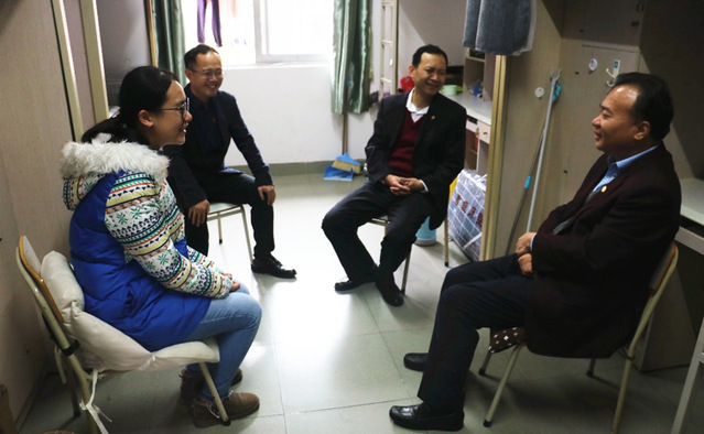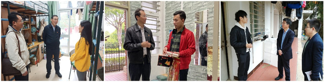 1月24日上午,校党委书记张彦,校党委副书记、副校长李建发,校党委副书记赖虹凯,校党委常委、宣传部部长徐进功分别率队走访了思明校区学生宿舍楼,看望慰问寒假留校学生,向他们致以新春的祝福和节日的问候。