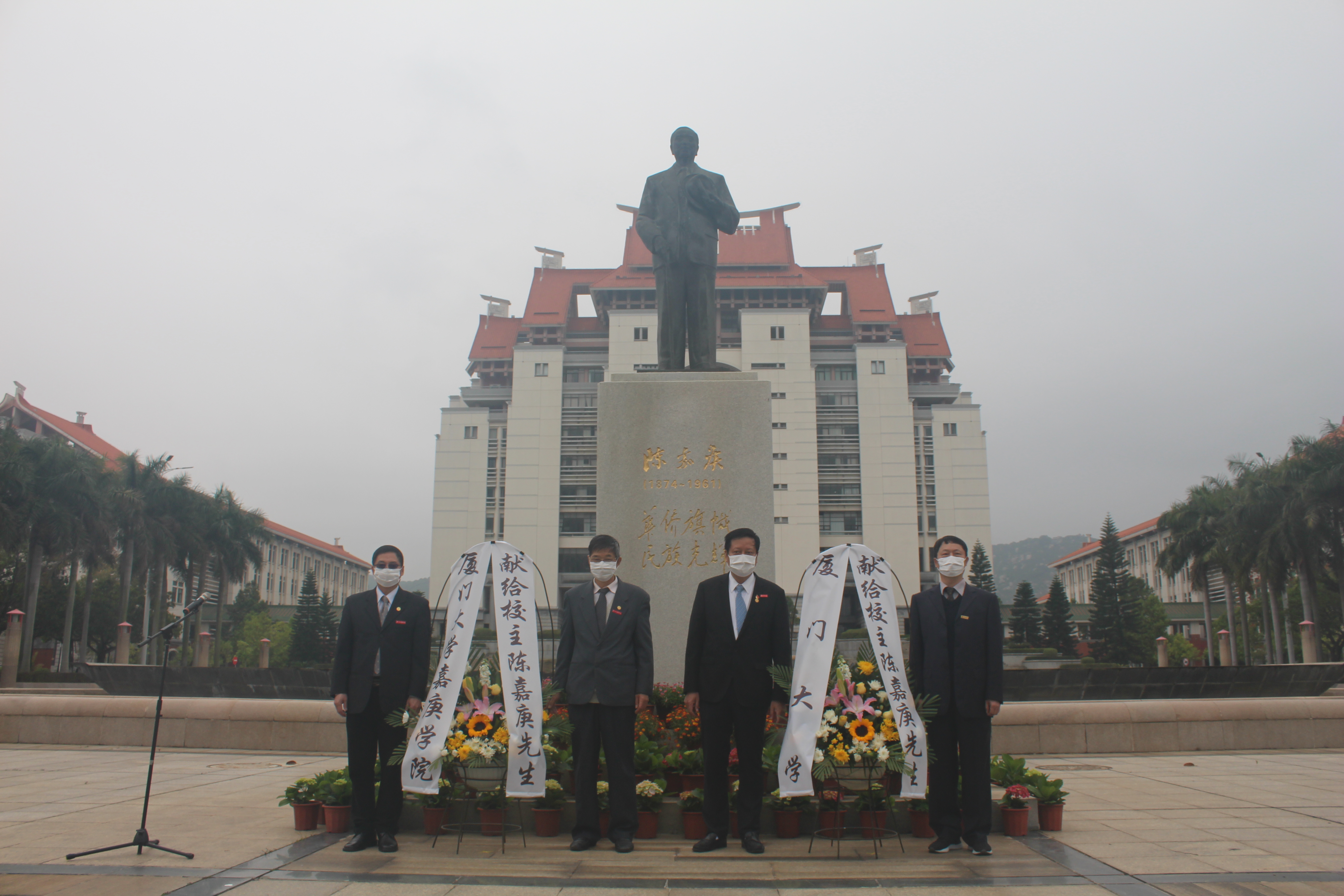 上午9时30分,校领导、校党委常委、校长助理、校友总会负责人、陈嘉庚先生后裔代表来到思明校区群贤楼前,祭扫陈嘉庚先生铜像,深切地缅怀他爱国爱校之深情和创办厦大之艰辛。