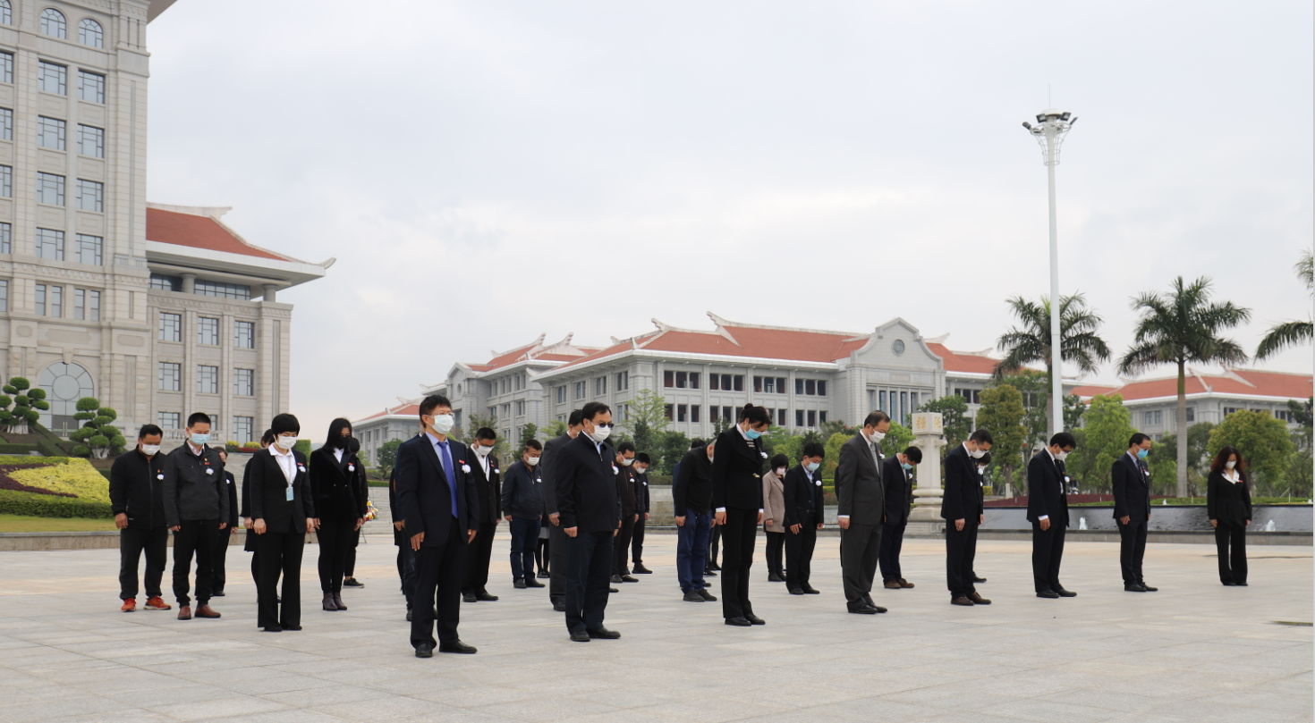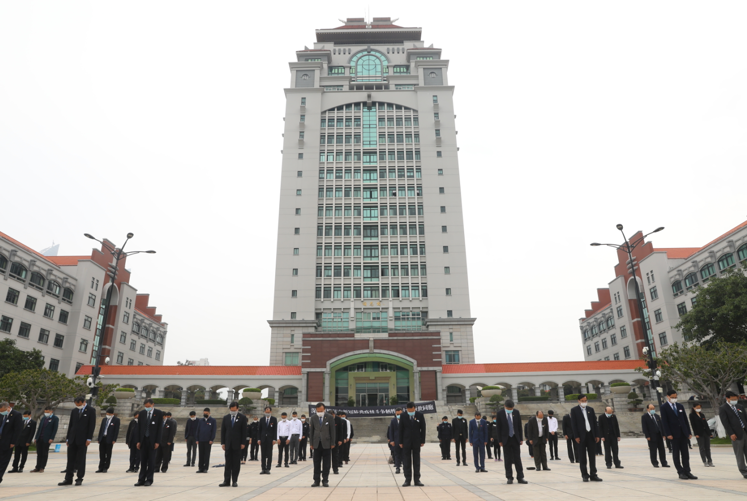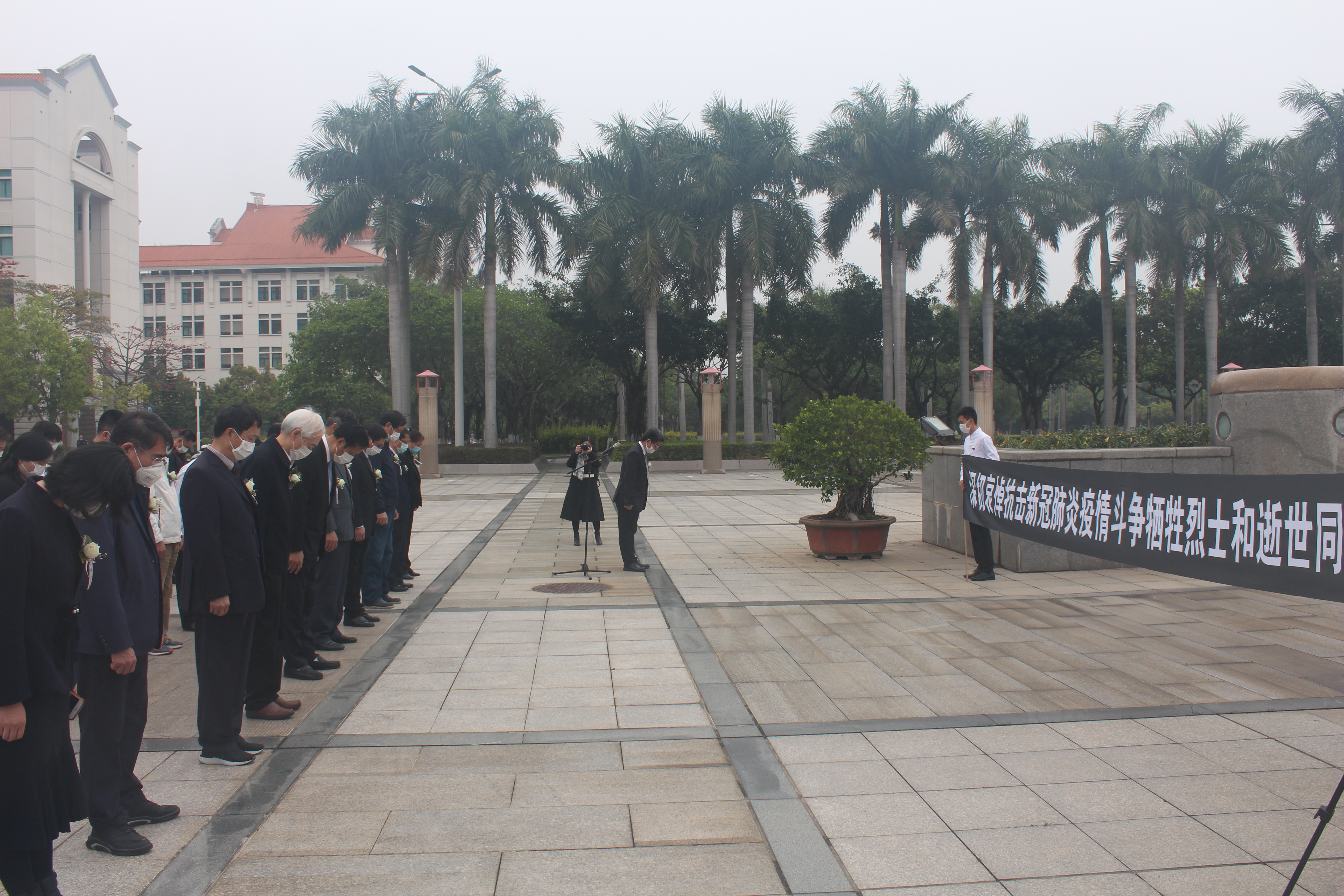 为了向抗击新冠肺炎疫情斗争牺牲烈士和逝世同胞表示深切哀悼,今天学校各校区降半旗志哀。上午十时,防空警报鸣响、汽车鸣笛,校领导、校党委常委、校长助理,部分机关部处、学院研究院主要负责同志以及医务人员、警卫人员代表等在思明校区嘉庚广场寄托哀思。全体人员庄严肃穆、佩戴白花,向抗击新冠肺炎疫情斗争牺牲烈士和逝世同胞默哀三分钟。翔安校区、漳州校区也同时在各校区举行默哀仪式。