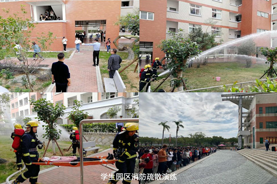 11月10日中午13时,博学、勤业、囊萤学生园区消防疏散演练活动正式拉开帷幕。消防疏散演练模拟学生宿舍楼火灾情况下,浓烟触发烟感报警、值班员现场确认火情并报告中控室,应急方案启动、电话报警,漳州开发区消防救援大队赶到并开展火情扑救和人员送医救助,校区校卫队员、物业保安增援、组织1400多名学生疏散并维持现场秩序等各联动处置环节。整个演习过程,各部门联动协同顺畅,秩序井然,达到了预期效果。