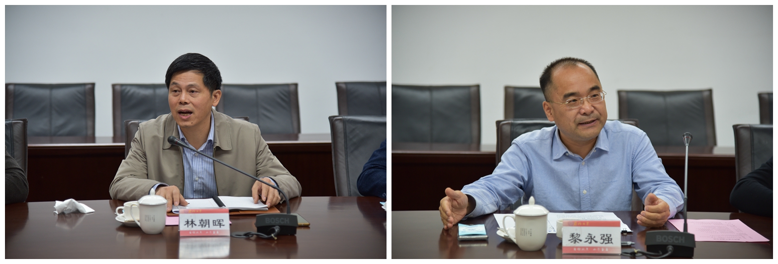 座谈会前,林朝晖还与校区管委会主任黎永强,学校后勤集团党委书记刘立荣、总经理林公明等交流探讨了后勤集团与开发区加强合作等事宜。