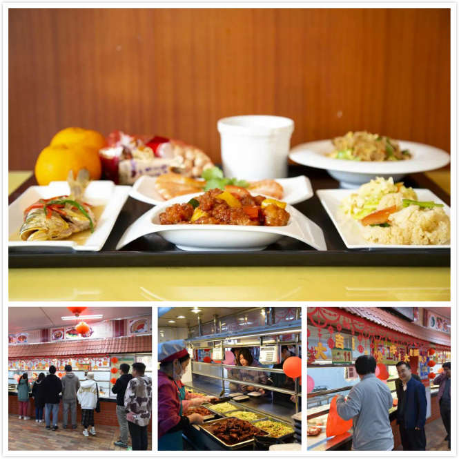 当天下午,黎永强来到南区餐厅供餐点,向师生拜年,祝贺新春并与留校师生一起辞旧迎新年。今年,根据学校常态化疫情防控要求,校区采用“堂食+外带”“分散就餐”“错峰用餐”等方式,提供自选的春节年夜饭套餐,引导留校师生错峰围炉用餐,让大家在保证用餐安全的前提下,感受春节的浓厚氛围,喜迎牛年新春。