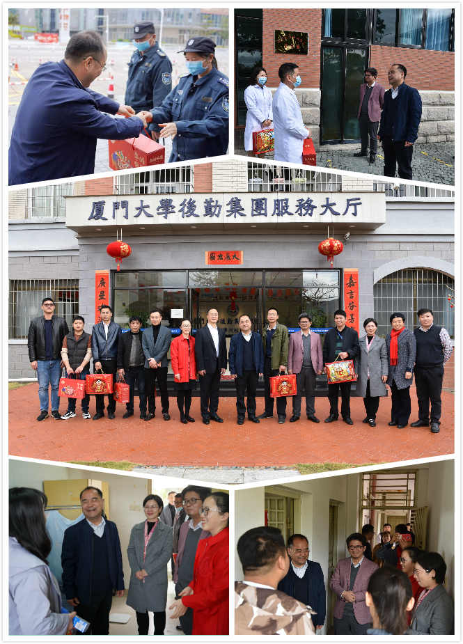 黎永强一行先后走访了主楼物业办公室、嘉庚学院保卫部、中门门岗、北区宾馆、后勤服务部、校区医务室、若谷公寓、敬贤公寓、南光宿舍园区和南区食堂等地,向校区在岗人员和留校学生送上慰问品,了解他们的工作生活情况。