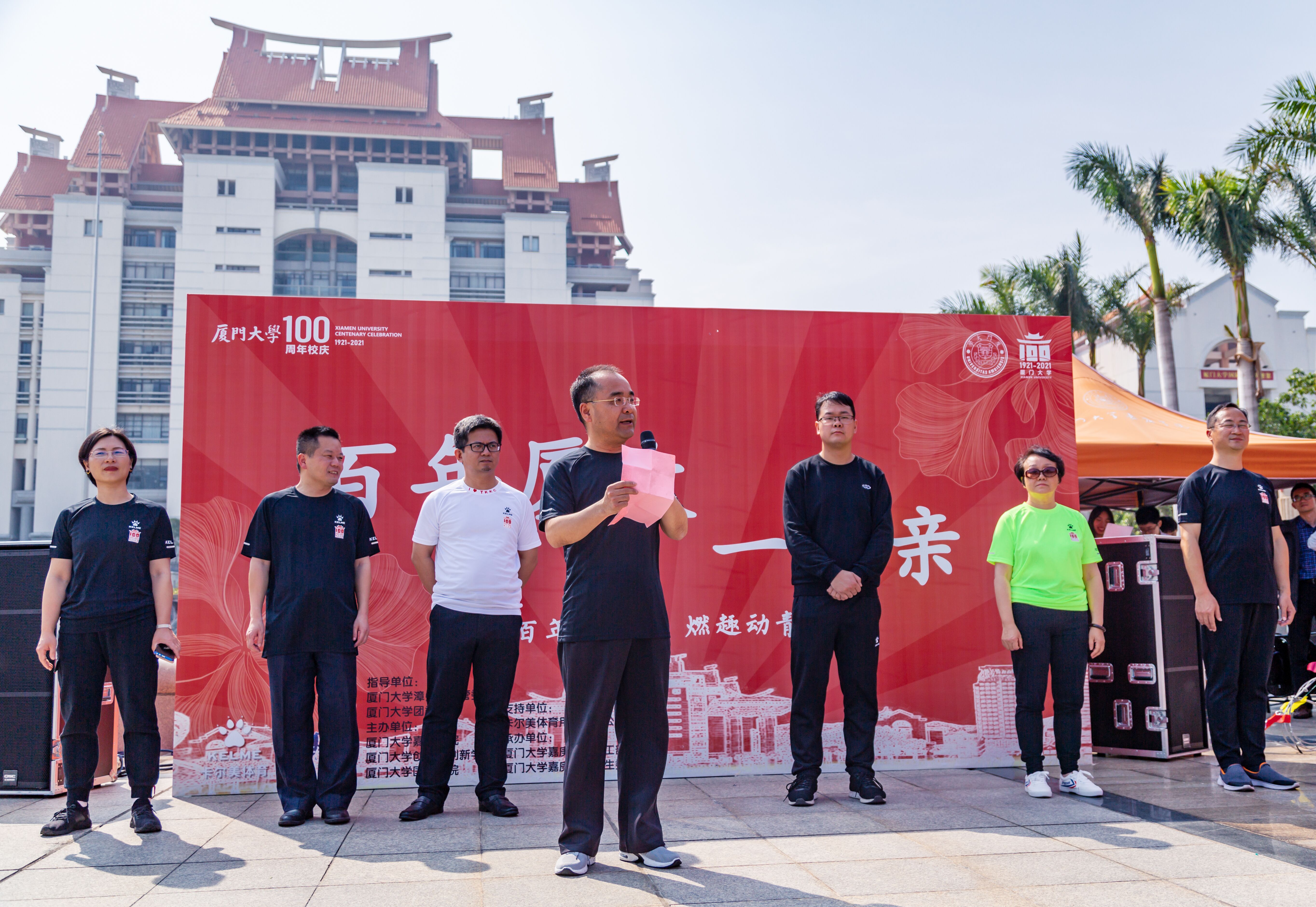 此次活动是漳州校区庆祝百年校庆系列活动之一,由漳州校区管委会、校团委指导;嘉庚学院、创意与创新学院、国际学院联合主办;嘉庚学院学工部、团委及学生会承办;卡尔美体育用品有限公司提供活动服装及奖品支持。校区办、保卫办、校区相关学院负责人共同参加了活动。