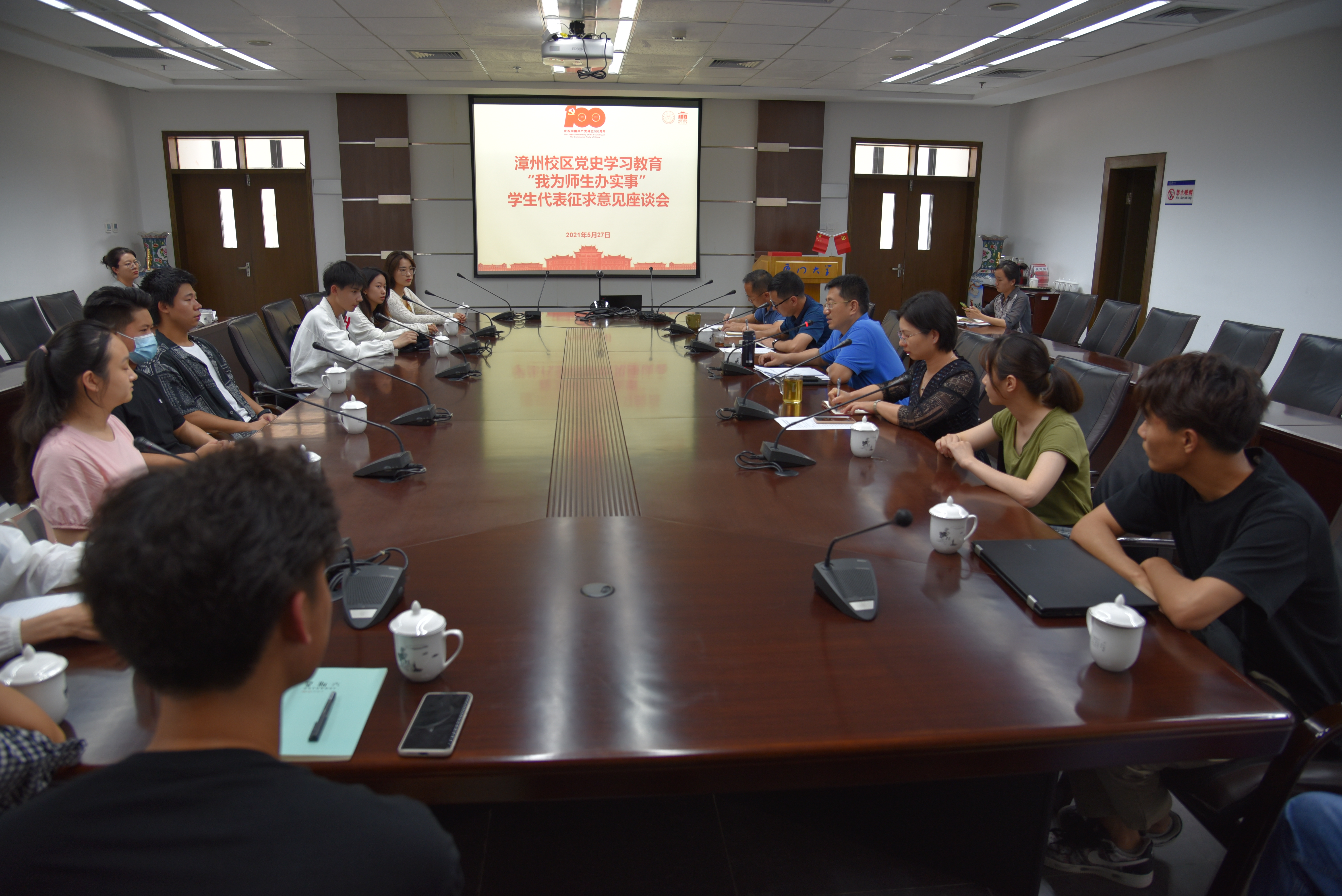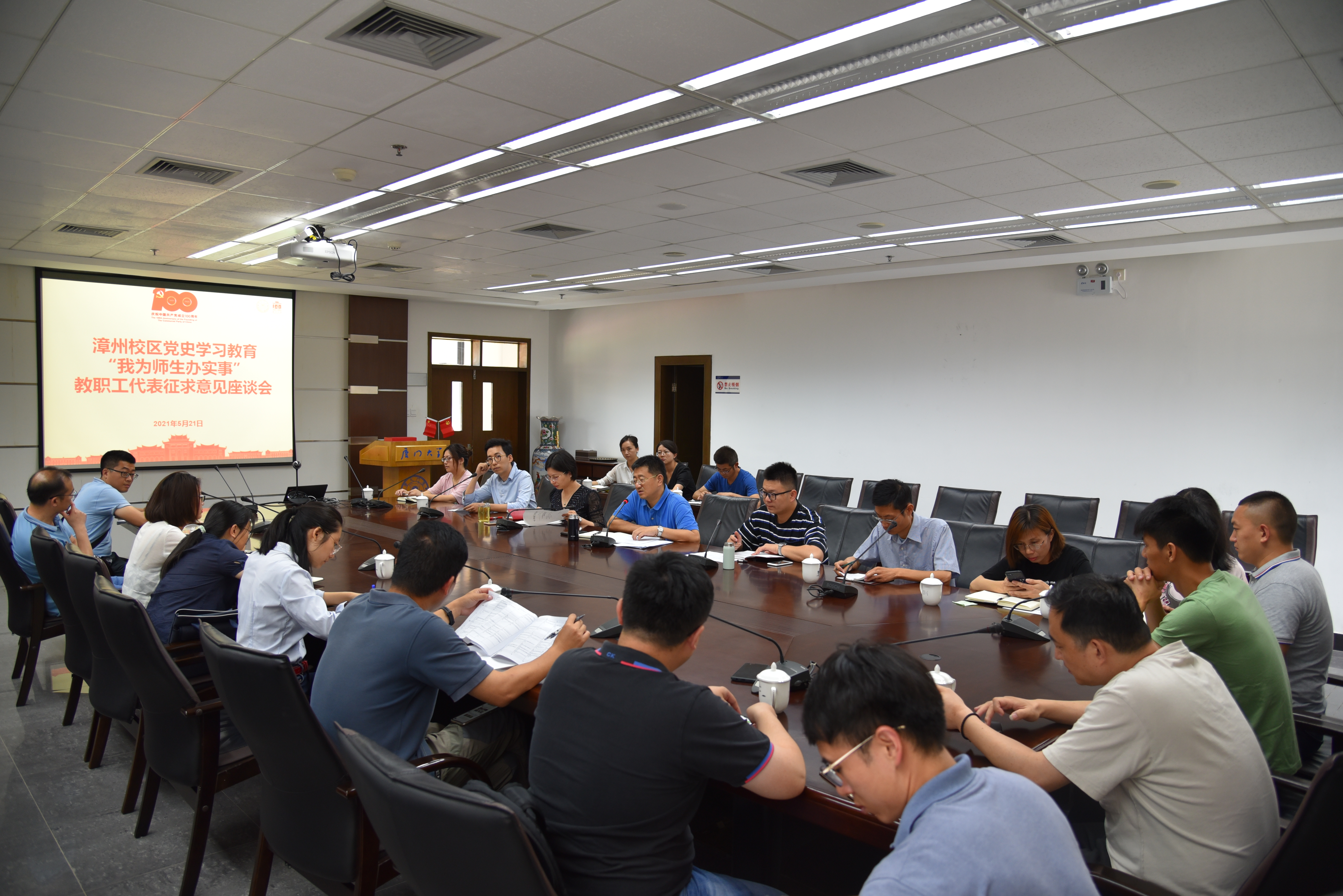为扎实开展党史学习教育,认真践行“我为师生办实事”实践活动,将学习教育结合到校区实践工作中来,切实解决师生关切的问题,进而提升漳州校区服务师生、服务地方的能力和水平,校区管委会于近期召开两场征求意见座谈会,广泛听取师生代表的意见和需求。漳州校区管委会相关领导,学生处相关负责人,创意与创新学院、国际学院、古雷石化研究院、产业技术研究院、嘉庚学院和后勤集团校区服务办等校区各单位师生代表参加会议,管委会副主任杨旸主持会议。