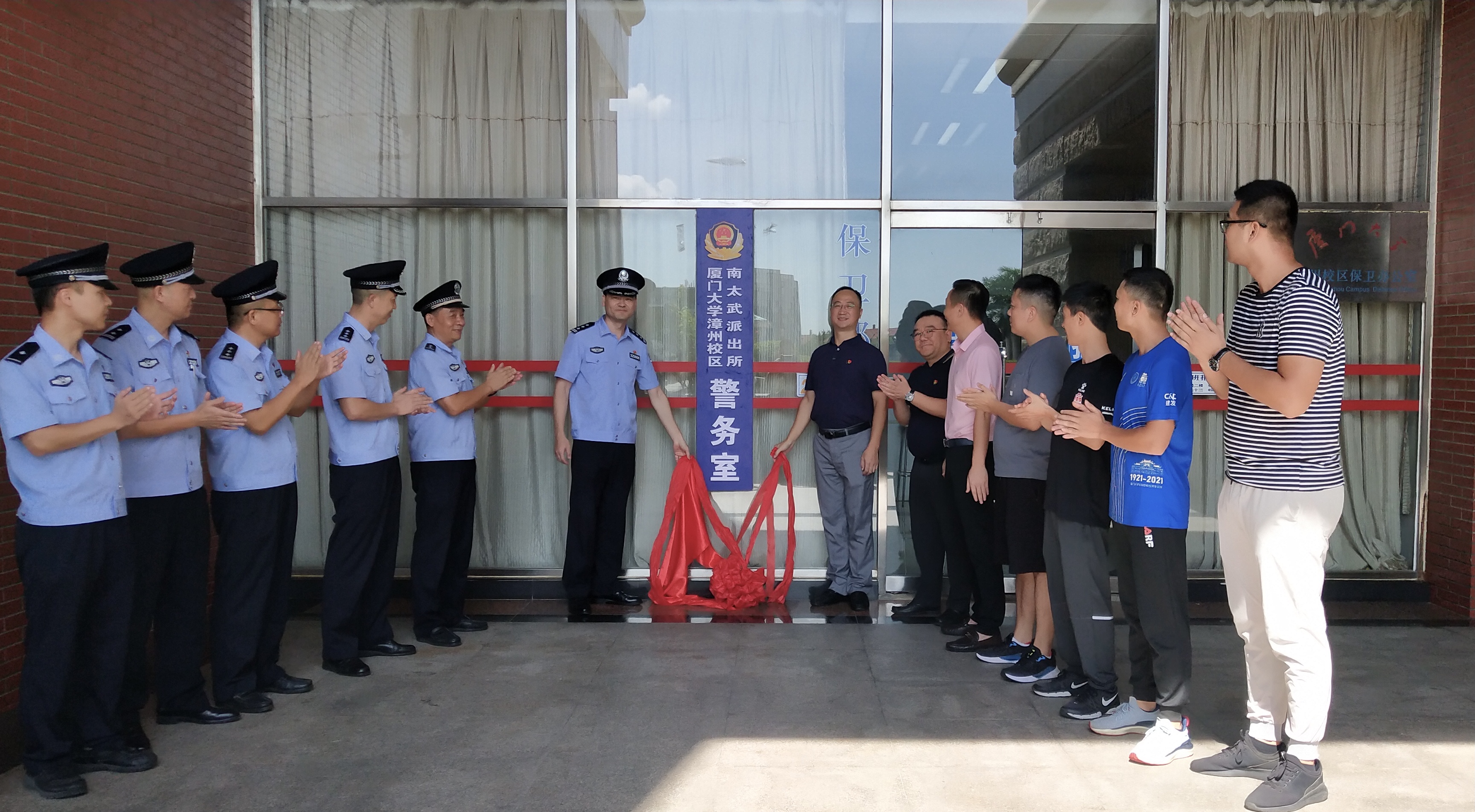 漳州开发区公安分局副局长李伟勇,漳州开发区公安分局治安大队、南太武派出所以及漳州校区保卫办、嘉庚学院保卫部等单位主要负责人参加了“南太武派出所厦门大学漳州校区警务室”揭牌仪式。