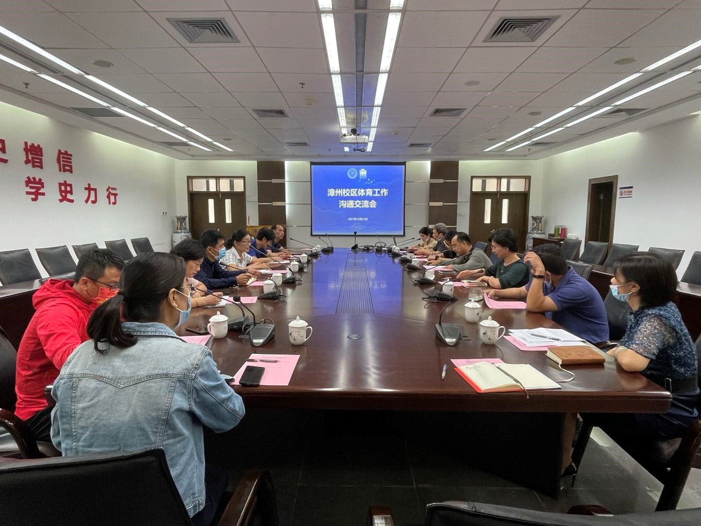 为进一步将党史学习教育与推动工作、解决实际问题结合起来,不断创新探索漳州校区各项工作运行机制, 10月21日上午,漳州校区围绕体育工作组织召开沟通交流会。会议由校区办公室主任王智兰主持。