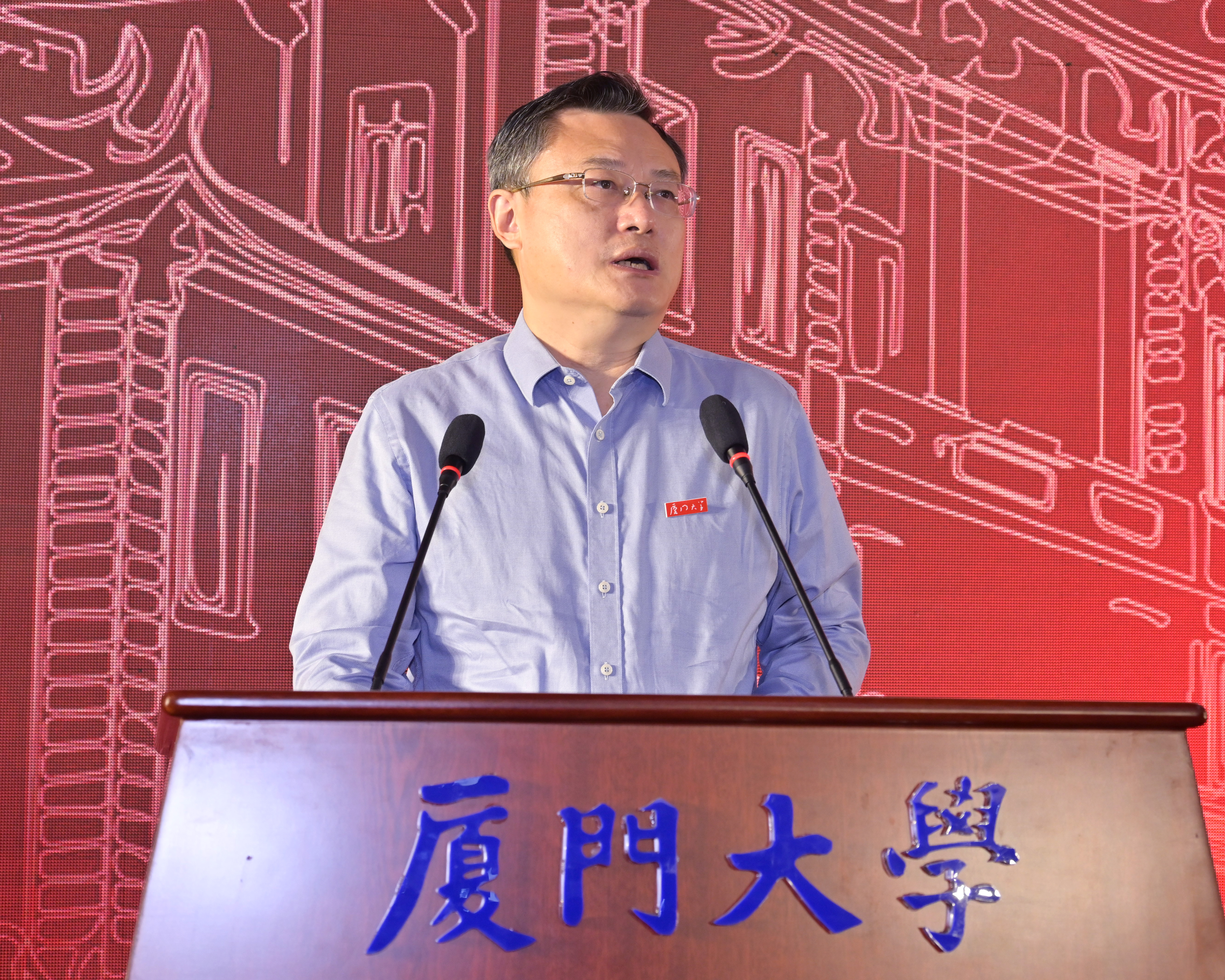 张荣代表校党委校行政向美育与通识教育中心的成立表示祝贺。他说,在厦门大学百年校庆之际,习近平总书记发来贺信,充分肯定学校百年光荣传统、办学成效、优良校风和鲜明特色,高度评价学校“培养了大批优秀人才”。近年来,学校坚持五育并举,注重以美育人、以文化人,深入挖掘校训、校歌、校史所蕴含的文化积淀与文化追求;把培育和践行社会主义核心价值观贯穿美育与通识教育的全过程,持续深化美育与通识教育改革,努力创造良好条件,不断提升学生的审美品位、艺术气质与人文修养,引领学生树立正确的审美观念、陶冶高尚的道德情操、塑造美好心灵、增强文化自觉和文化自信,美育与通识教育工作成效显著。