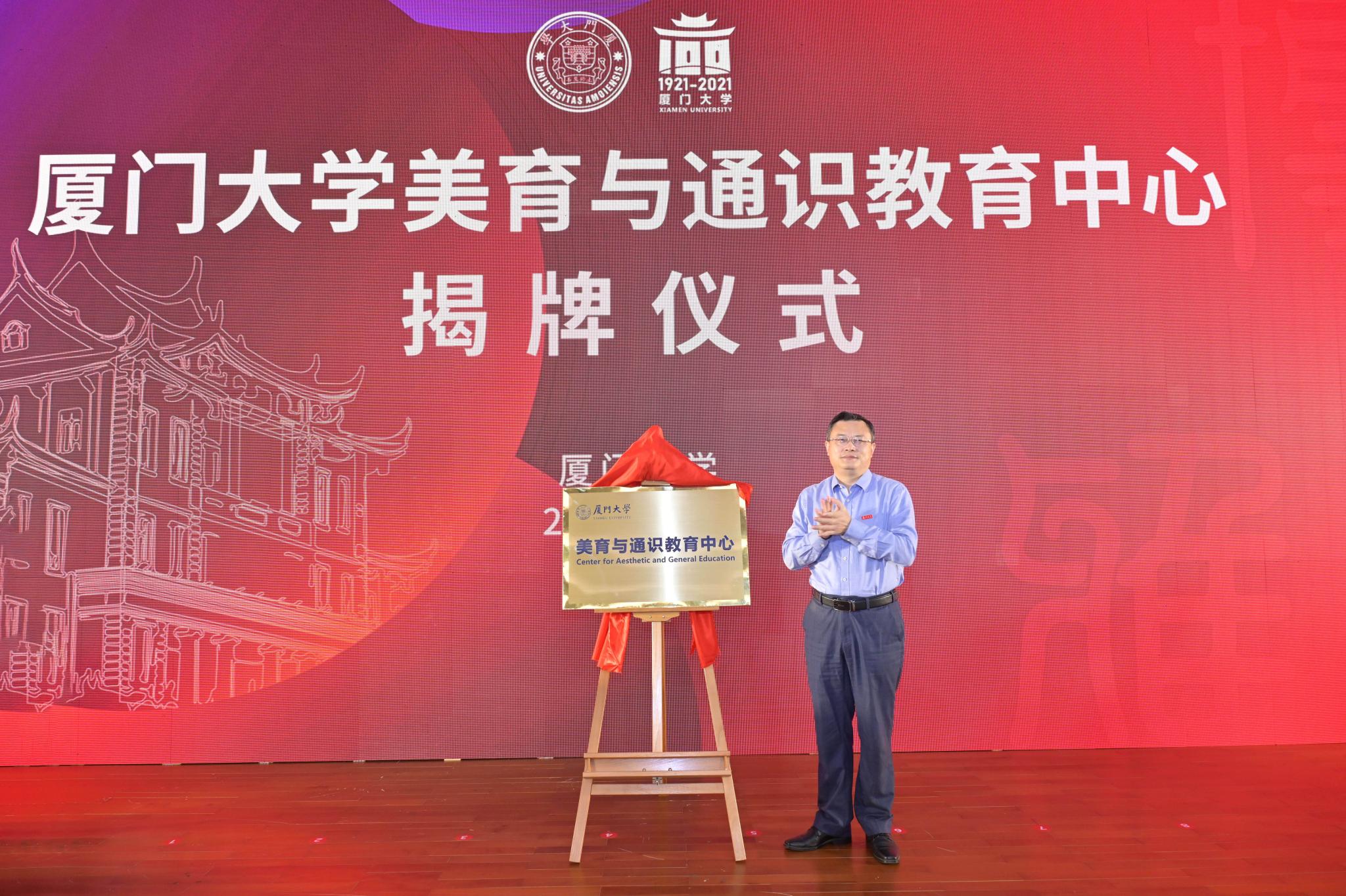 张荣指出,今天揭牌成立的美育与通识教育中心是学校面向新百年发展、不断提高人才培养质量的重要举措。学校希望以中心的成立为契机,充分发挥学校综合性大学优势,在美育与通识教育工作中,始终坚持以立德树人为根本,以社会主义核心价值观为引领,以“培养学生家国情怀、全球视野、广博学识、严谨思维、健全人格、创新意识和终身学习能力,涵养人文底蕴、艺术气质和科学素养”为宗旨,深入推进美育与通识教育改革,培养学生成为德智体美劳全面发展的时代新人,打造厦门大学一流的美育与通识教育品牌。