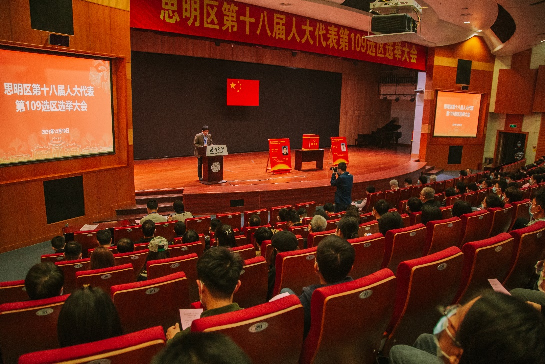 据了解,校区于今年10月开启109选区的思明区人大代表换届选举工作,按照坚持党委领导、充分发扬民主和严格依法办事的重要原则,精心组织,周密安排,先后完成前期准备、宣传发动、选民登记、提名酝酿代表候选人、举办选民见面会、组织投票选举等各阶段的任务。