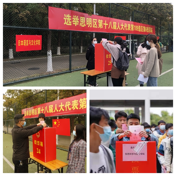 12月10日,是思明区第十八届人民代表大会代表换届选举投票日。漳州校区作为厦门市思明区的第109选区,根据《思明区第十八届人民代表大会代表投票选举办法(草案)》要求,在思明区人大选举厦门大学办事处的指导下,顺利完成选举各项工作。