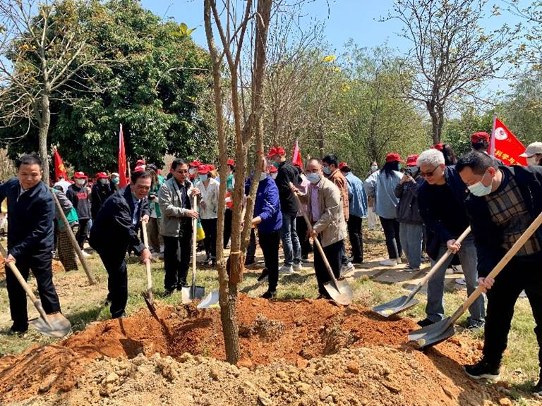 本次种植的55棵黄花风铃木,由厦门汇圆企业管理有限公司捐赠,公司董事长侯德光、总经理江志宾参加植树活动。