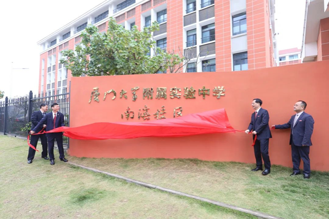 4月19日上午,厦大附中南滨校区挂牌仪式正式举行。校党委常委、副校长邱伟杰,漳州开发区党委书记、管委会主任黄强中,漳州校区管委会主任、嘉庚学院党委常务副书记黎永强,漳州开发区党委委员、管委会副主任林朝晖共同为厦大附中南滨校区揭牌。