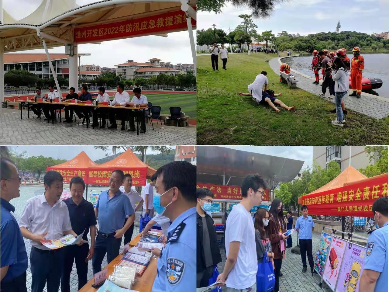 演练结束后漳州开发区党委政法委、应急管理局、公安分局、交警大队、消防救援大队等单位在北区南强广场联合开展“遵守安全生产法 当好第一责任人”安全生产进校园活动,开展防诈骗、禁毒、交通安全、消防安全、防灾减灾等系列安全宣传教育活动,向校区师生发放宣传插页,进行安全和法制教育等。