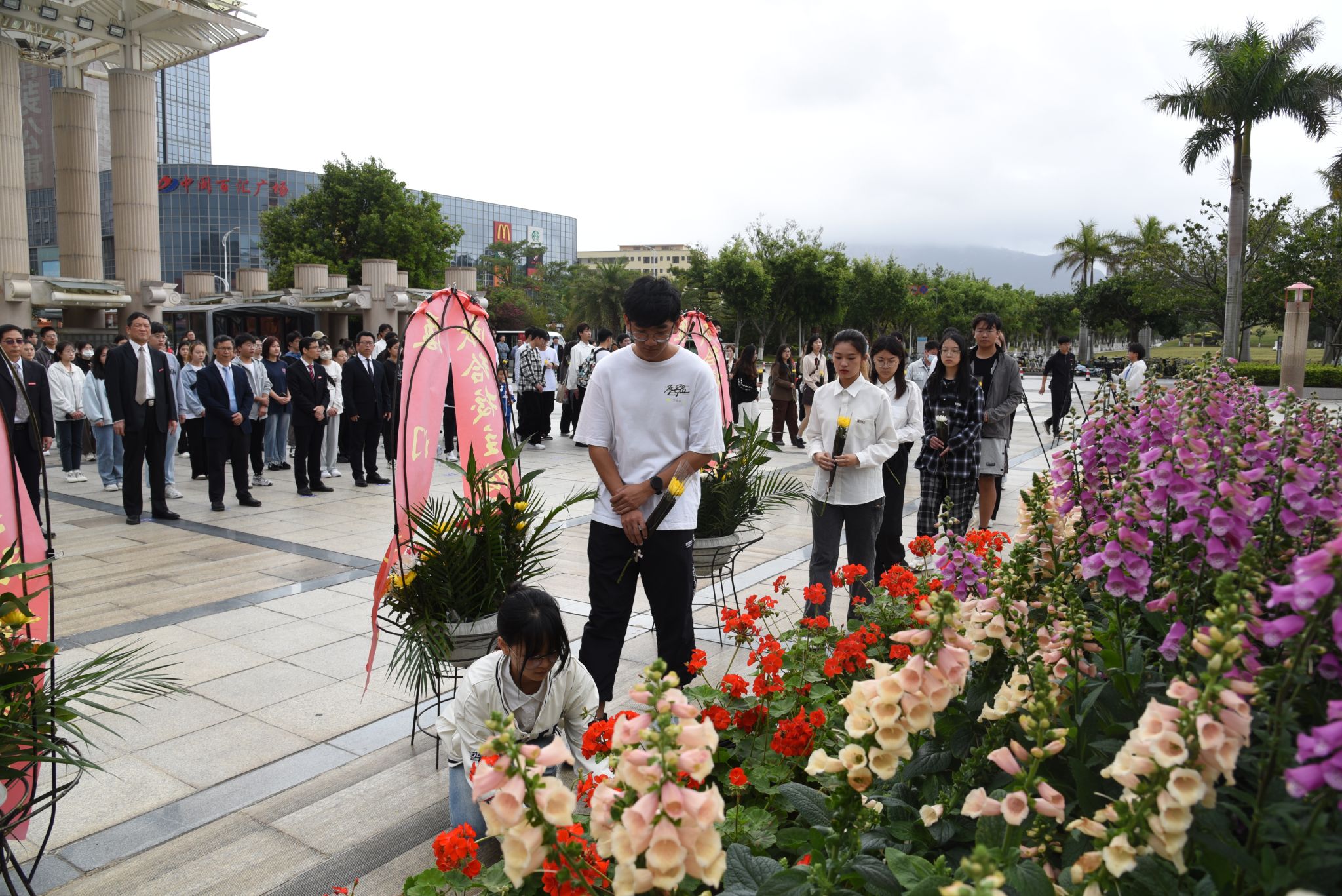 漳州校区管委会主任、嘉庚学院党委常务副书记黎永强,漳州校区管委会副主任余自中,嘉庚学院副院长雷锐生、洪永强,国际学院党委书记何元赞,创意与创新学院党总支副书记邹江涛,产业技术研究院副院长杨斌,漳州校区保卫办公室主任江顺,后勤集团漳州校区服务办主任张建波,附属实验中学副校长周永春,附属实验小学校长邱桂华等参加了祭扫仪式。