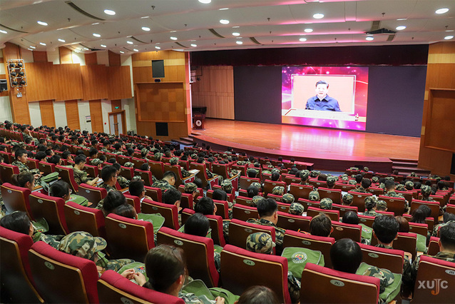9月3日晚上,在主楼群3号楼大报告厅,嘉庚学院学工部部长、团委书记姚祖婵,学工部部长助理、学工部教工党支部书记明召以及2018级新生军训团师生代表集中观看了“学习‘新思想’福建百万师生同上一堂课特别节目”。