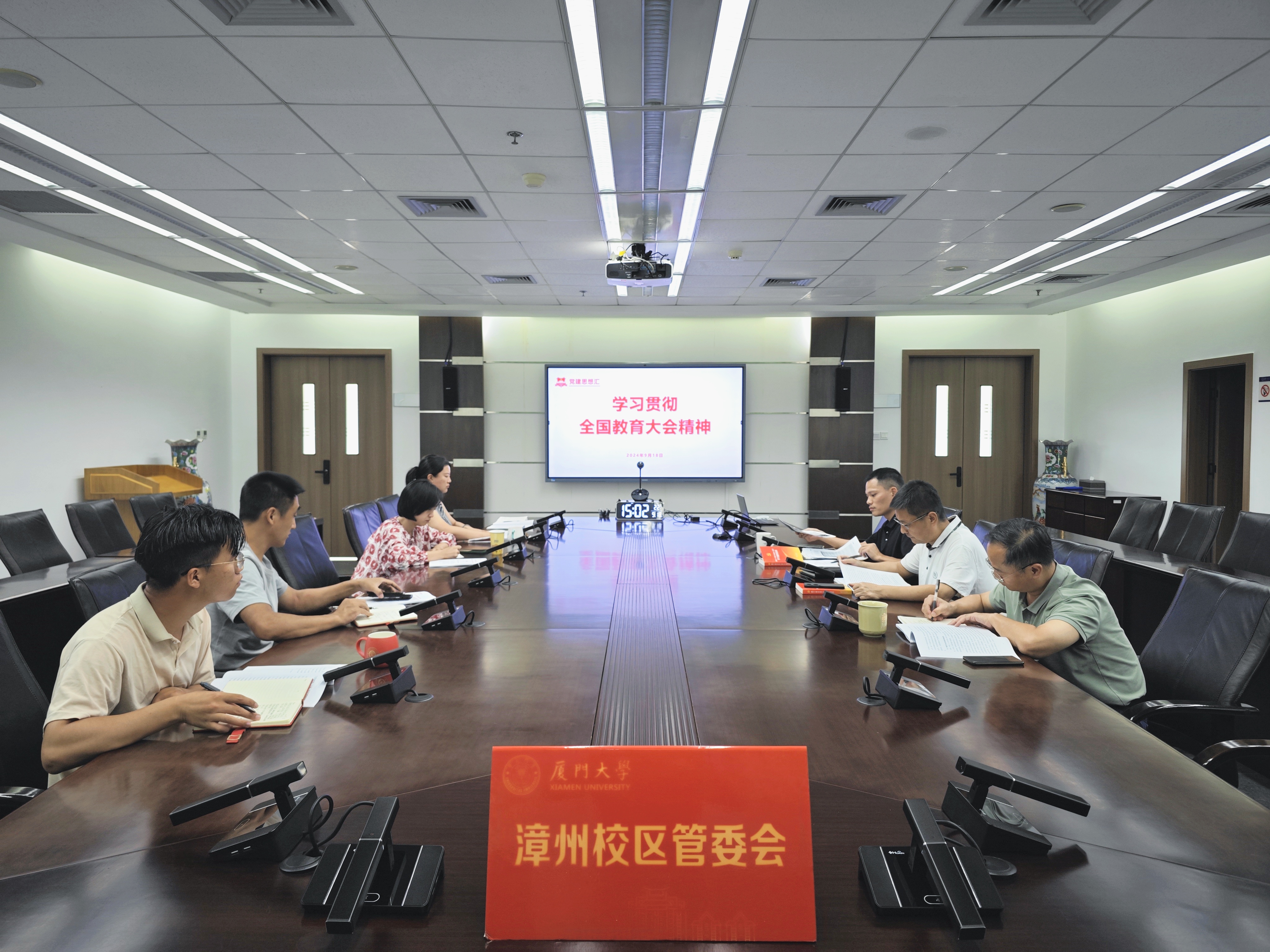 9月18日下午,漳州校区办公室、保卫办公室联合党支部召开党员大会,深入学习贯彻党的二十届三中全会精神和全国教育大会精神。会议由党支部书记何鸿鸣主持,漳州校区管委会副主任张军奎及党支部全体党员参加会议。