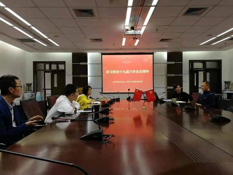 为认真学习贯彻党的十九届六中全会精神,深入领会党的百年奋斗重大成就和历史经验,深刻理解新时代中国共产党的历史使命,用全会精神武装头脑、指导实践,进而推动工作, 12月17日,漳州校区办公室、保卫办公室联合党支部组织全体党员在校区主三1009会议室开展党的十九届六中全会精神专题学习。