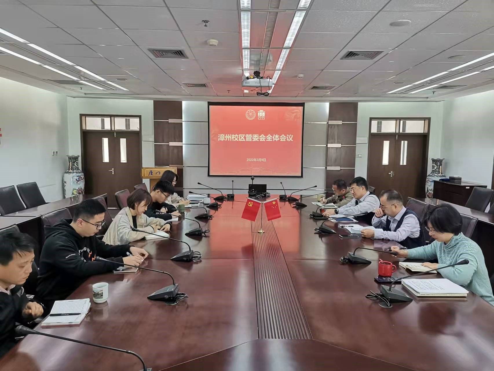 3月9日上午,漳州校区办公室、保卫办公室联合党支部借漳州校区管委会召开全体会议的契机,进一步探讨推进支部联系对接漳州校区“一站式”学生社区相关工作。