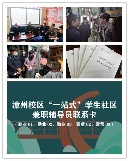 此外,2月21日下午,支部兼职辅导员与学校公寓办、资产处、后勤服务办,以及创意与创新学院相关负责人及经办人,走进学生园区,实地商议园区安保力量提升、园区规划、自助贩售机布置等事宜。3月7日,支部全体兼职辅导员结合新学期学生宿舍安全与卫生检查,与公寓办及学院专职辅导员一同走访学生宿舍,关心学生学习和生活和情况,发放联系卡,方便学生遇到问题联系“一站式”学生社区兼职辅导员。漳州校区管委会副主任杨旸、学生工作部副部长陈泗林、校区办主任王智兰、校区保卫办主任江顺、创意与创新学院党总支副书记邹江涛、学生公寓学生工作办公室秘书马向华等参加相关活动。