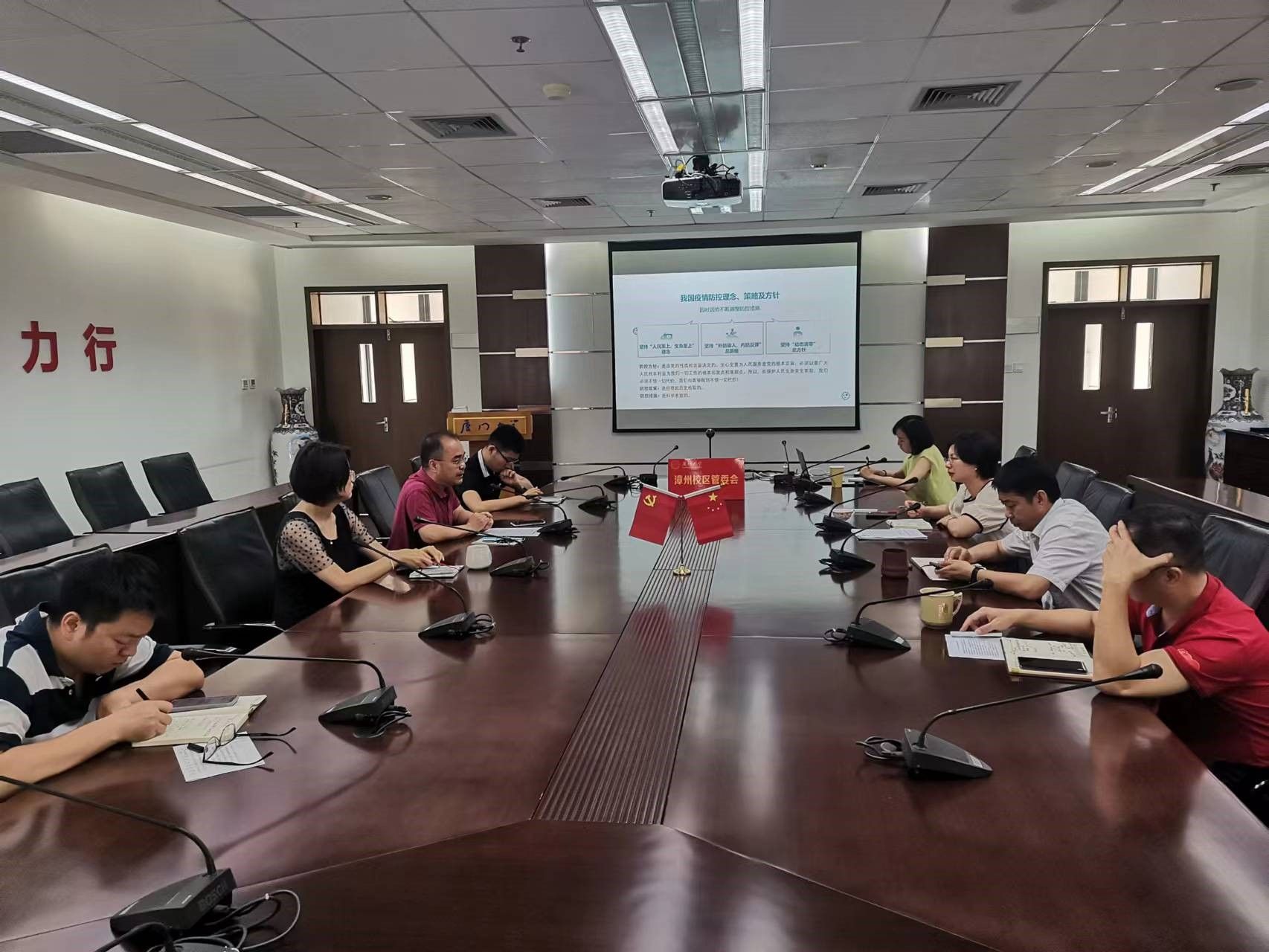 5月31日上午,漳州校区办公室、保卫办公室联合党支部组织全体党员在校区主楼群3号楼1009会议室开展“认清当前新冠肺炎疫情防控形势”专题学习会议。漳州校区管委会主任黎永强到会指导。