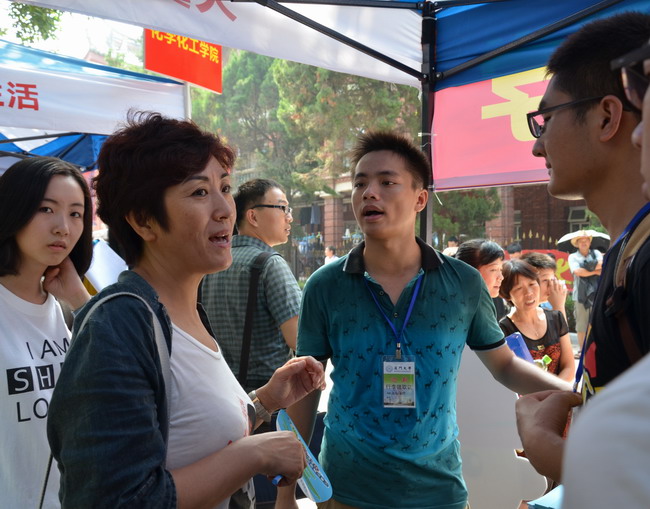 除此之外,各个学院也将自己的“看家本领”拿了出来,用生动活泼的方式为新生和家长提供着周到服务和人文关怀:人文学院迎新点上,师生们轮流装扮成学院原创的卡通人物与新生合影,萌态十足;新闻传播学院提前让新生们“爆照”,然后创意地将全体新生的照片制成大展板,在这个“新闻一家,传播天下”的展板前,为每位新生和家长录制大学生活的第一段视频;生命科学学院将学院本科生培养的亮点特色制作成图文并茂的展板挂着,让人一目了然;医学院制作了“今天,我成为了一名医学生”心愿墙,上面布满了新生“加油”、“我要成为一名学霸”等等励志的留言;能源学院则让新生们在“梦想在此启航”的留言板上签名留言……所有的学院都以清晰的标识、热情的引导为新生和家长们消除初到异地的紧张与不安。